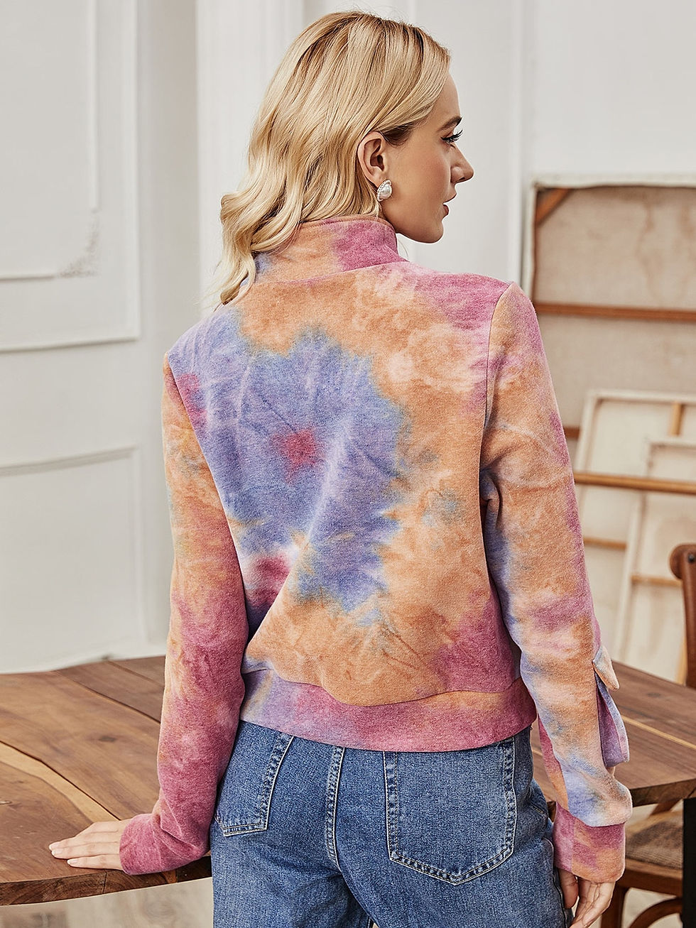 Pink Tie & Dye Zip Up Sweatshirt