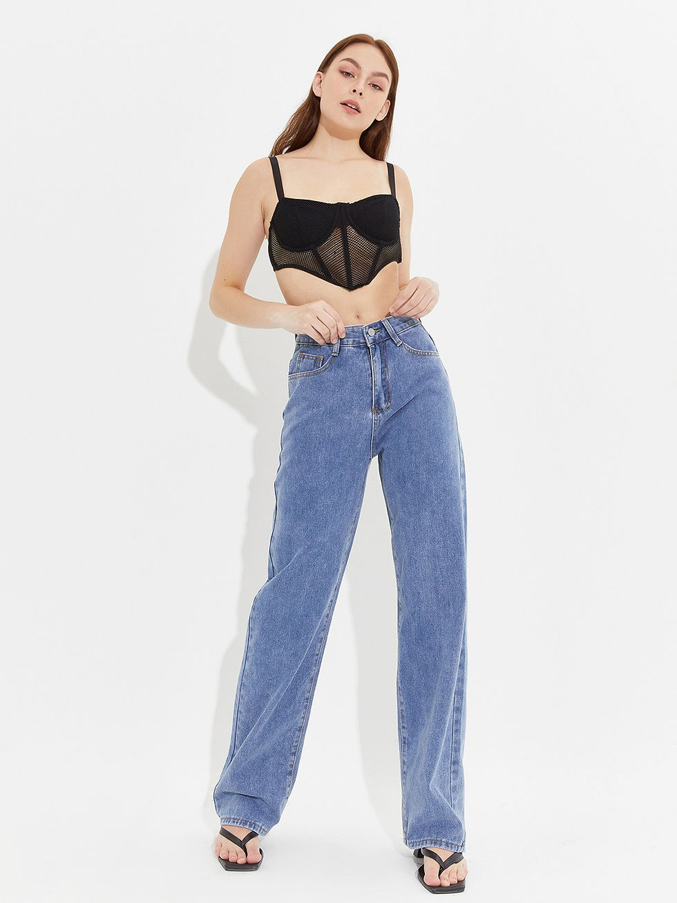 Black Floral Embroidered Sweetheart Neck Blouson Crop Top